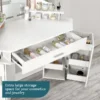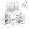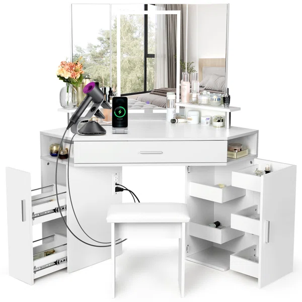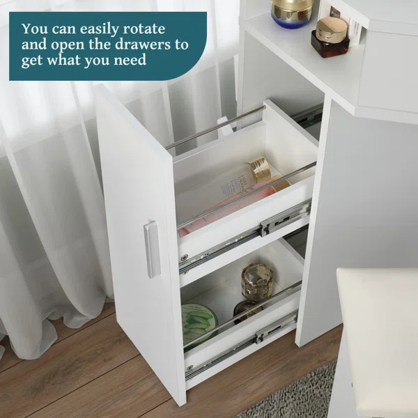 The vanity is available in plain white and antique + black options for a variety of decorative styles. This vanity can be placed in any corner and is a great space saver. It also has a built-in outlet to provide a convenient and easily accessible power source for grooming tools and appliances. Meanwhile, this vanity has a large drawer, a pull-out drawer, an integrated rotating drawer, two hidden spaces, and two display shelves for your frequently used items. The ample storage space lets you get rid of the mess and brings neatness. In addition, it has 3 light modes, so you can use different lights in different scenes. For example, warm white is more helpful in creating the best look when you make up. This is an ideal gift for your wife, mother, daughter, or friend!