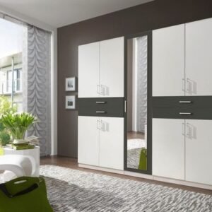 sliding door cabinet from rauch creates order and space in your home. Thanks to the different heights and widths, you have a lot of storage space available to carefully store clothes. Thanks to the modern design and the attractive selection of colors, the cabinet adapts seamlessly to your furnishing style. You can easily open the large sliding doors with the help of continuous handle strips, whereby the doors slide to the side to save space and thus reveal the spacious interior of the cupboard. The attached mirror on the front of the cabinet is perfect for checking your outfit and creates visual space in the room.